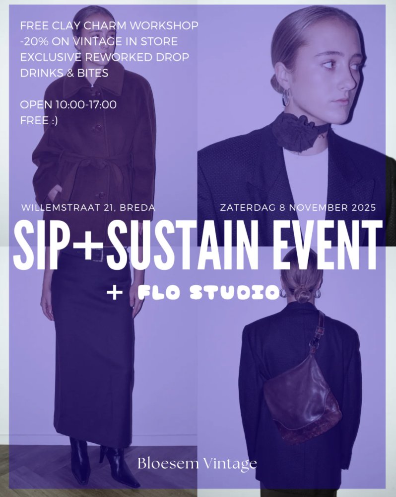 Tijdens onze SIP+SUSTAIN events vieren we duurzaamheid met o.a. korting op onze collectie, de lancering van ons nieuwste reworked item én een upcycling workshop.