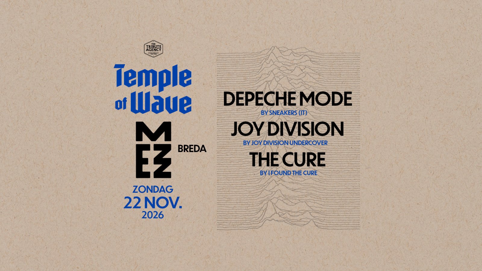 Tijdens Temple of Wave stap je in de mysterieuze sfeer van de jaren ’80. Denk aan dromerige melancholie, diepe baslijnen en tijdloze sounds van iconen als Joy Division, The Cure en Depeche Mode, tot leven gebracht door toonaangevende tribute bands van nu.