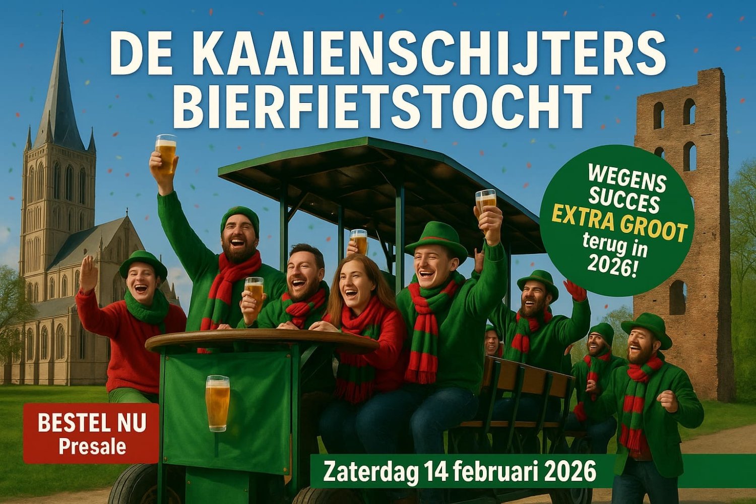 Trek je carnavaleske outfit aan, neem je beste humeur mee en maak je klaar voor een tour vol feest, vriendschap en CV De Kaaienschijters!