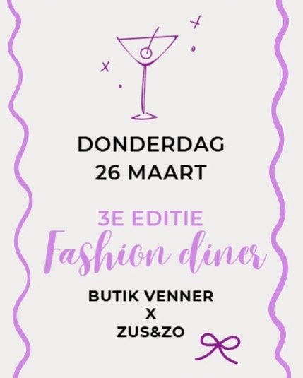 Donderdagavond 26 maart is het tijd voor het derde Butik Venner x Zus&Zo Fashion Diner! Wat mag je verwachten?