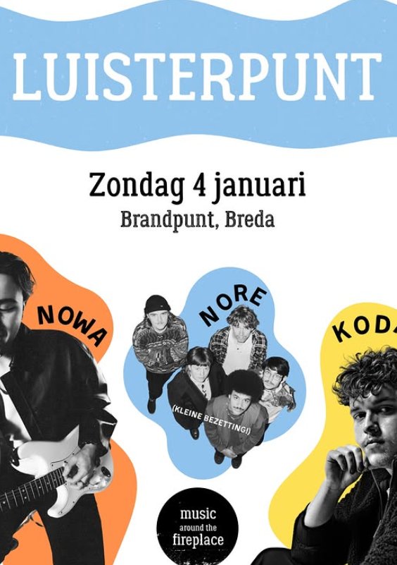 Luisterpunt Sunday, 4 January 19:30 BRANDPUNT | Koffiepunt, Cadeaupunt, Laserpunt en Vergaderpunt 4 januari is dit eerste editie van Luisterpunt en wat is nou een betere start van het nieuwe jaar dan met een line-up als deze? Read more 4 januari is dit eerste editie van Luisterpunt en wat is nou een betere start van het nieuwe jaar dan met een line-up als deze?Kaartjes zijn maar €11, daarmee het ideale kerstkado en nu te koop via de link in de bio!!!Neem je beste vriend/vriendin/moeder/vader/broer/zus of date mee en kom écht luisteren naar singer-songwriters op 4 januari vanaf 19:30! Reigerstraat 16, 4811 XB Breda