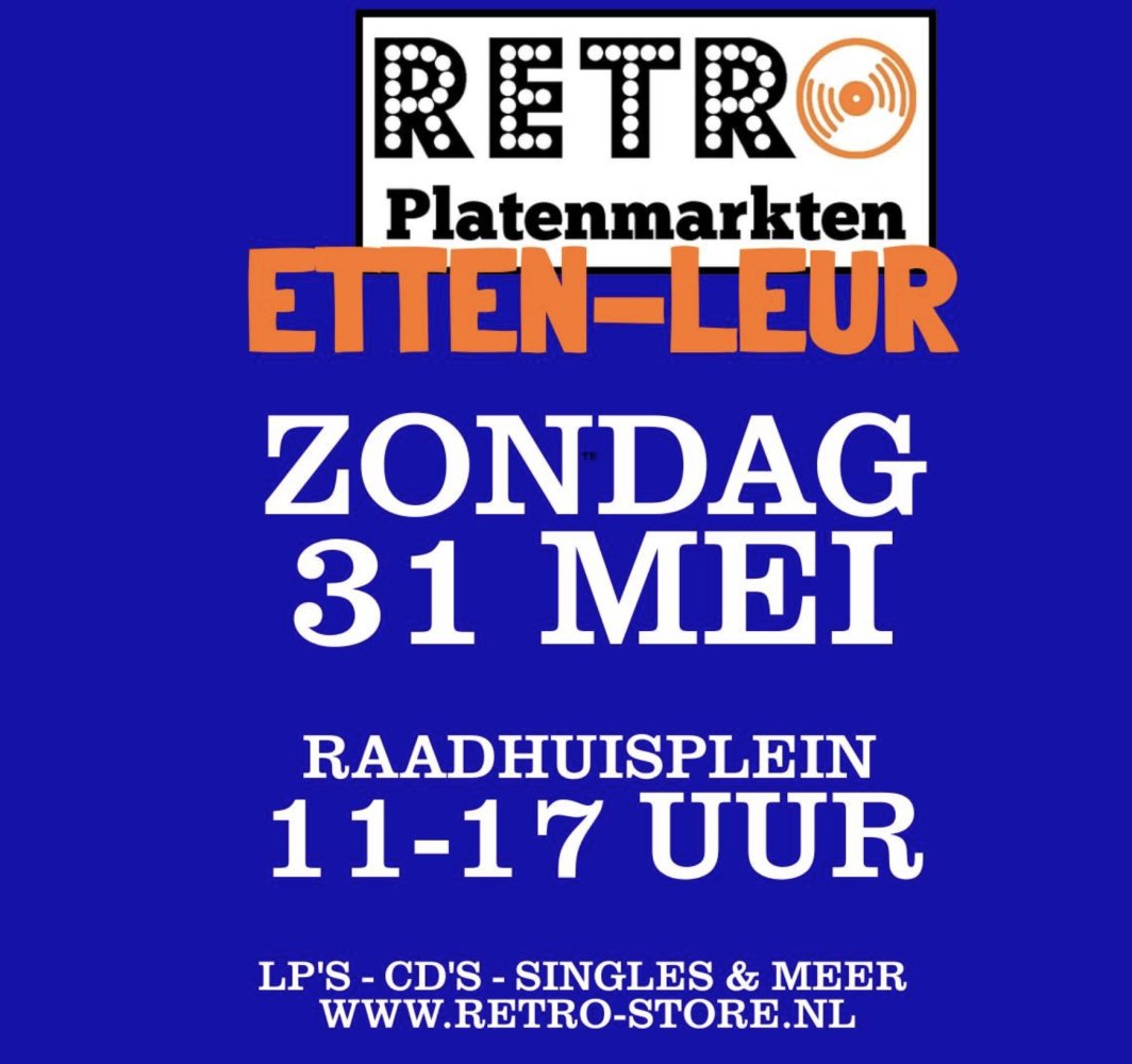 Retro Platenmarkt op het Raadhuisplein Sunday, 31 May 12:00 Raadhuisplein Etten-Leur Een groot aanbod aan vinyl, lp's, singles en cd's Read more Op zondag 31 mei is er een retro platenmarkt met een groot aanbod aan vinyl, lp's, singles en cd's op het Raadhuisplein in Etten-Leur.Deze is van 12.00-17.00 uur.De organisatie is in handen van Retro-Store.Wil je op de markt staan, hier kun je inschrijven>>Info:+31 6 28421475info.retroboz@gmail.comhttps://www.retro-store.nl/ Raadhuisplein, 4876AJ Etten-Leur