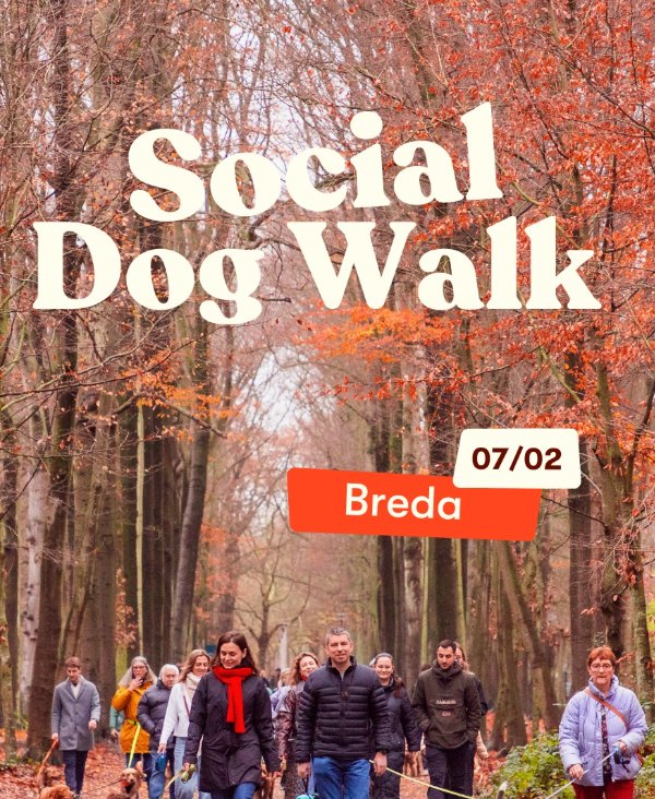 Afspraak om 9:30 aan De Boschwachter, Mastbos voor een ontspannen Social Dog Walk waar honden en pet parents samenkomen om te wandelen, bij te praten en te genieten.