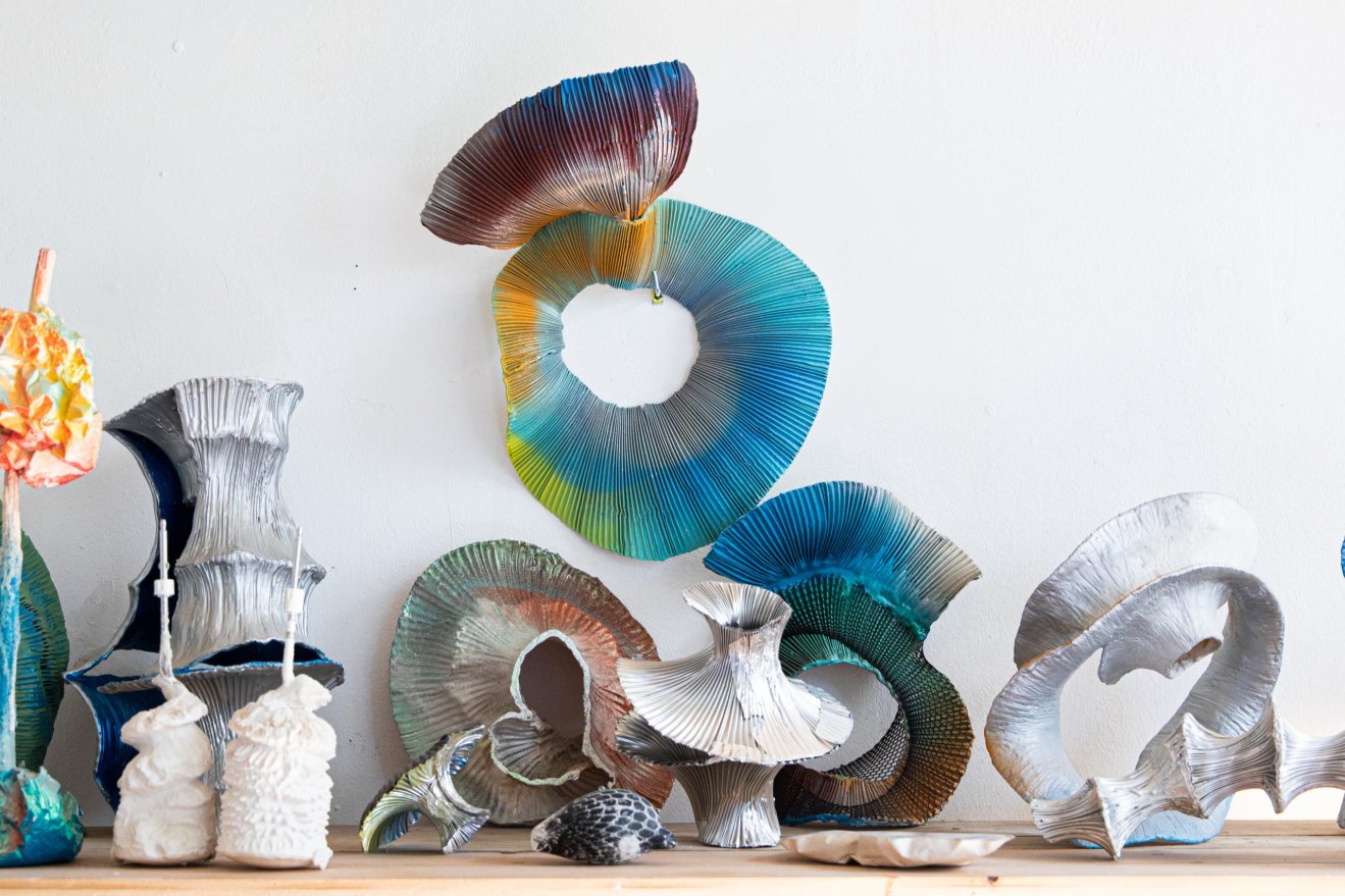 De natuur vormt de basis van Bouwmeesters werk. Ze onderzoekt hoe landschappen ontstaan en veranderen, en hoe planten en dieren zich ontwikkelen. Die fascinatie zie je terug in haar sculpturen: organische vormen die lijken te kronkelen, uitzetten of juist samentrekken — alsof ze leven.