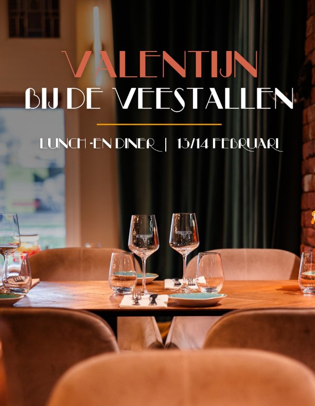 Vier de liefde met een culinair Valentijnsmenu bij Restaurant De Veestallen. Op 13 & 14 februari verwennen we je met een speciaal samengesteld menu, perfect om samen van te genieten. Of je nu langskomt voor de lunch of het diner: romantiek staat centraal
