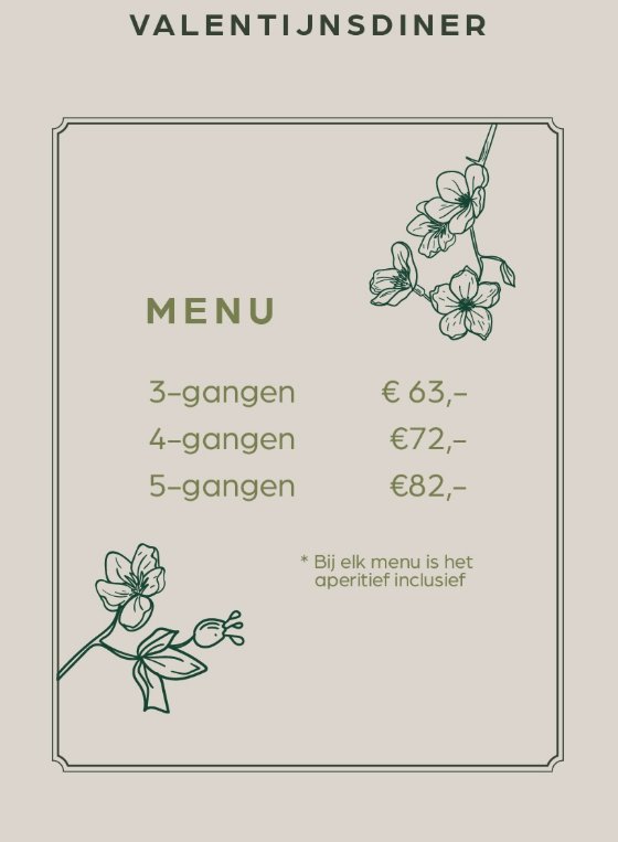 Voor wie carnaval even wil ontvluchten en Valentijn liever rustig viert. Bij Blossem serveren we 14 februari een speciaal Valentijnsmenu: een verrassingsmenu met aperitief.