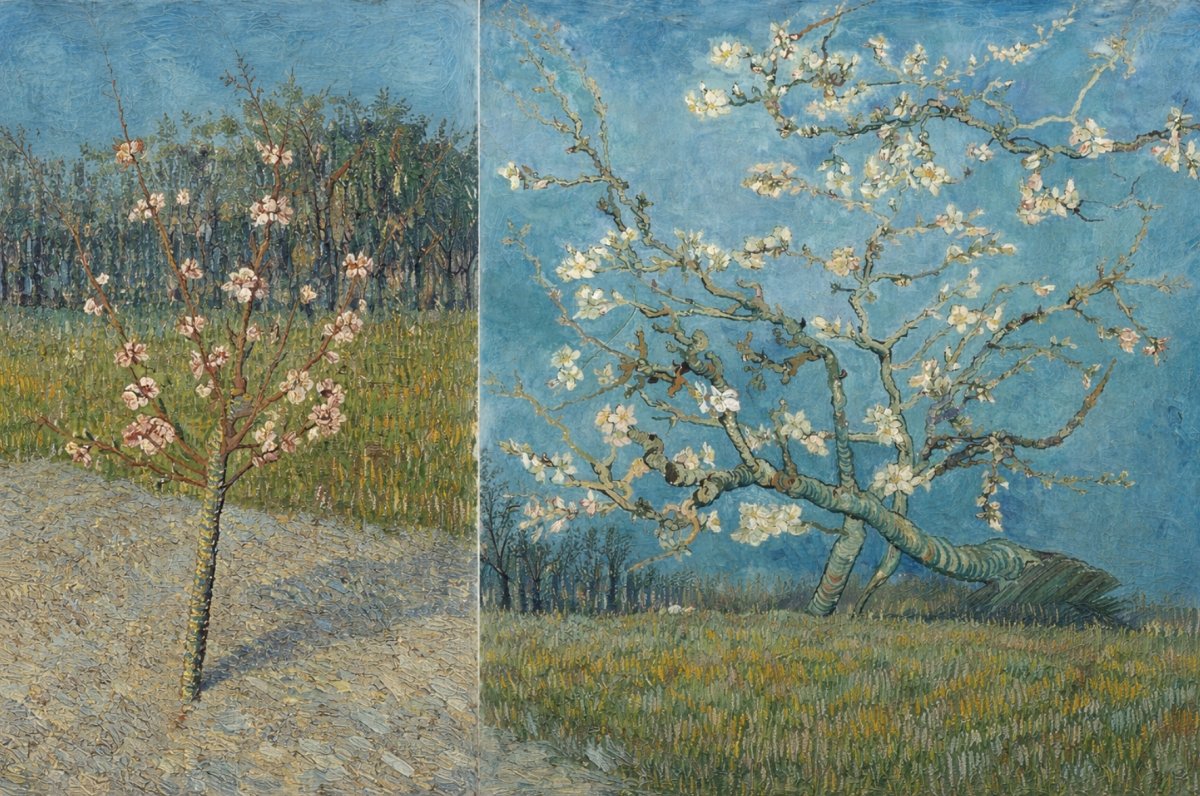 Ze zijn een symbool van nieuw leven: de amandelboom bloeit al vroeg in de lente, wat het een krachtig symbool maakte voor geboorte en hoop, vooral gezien de context van de geboorte van zijn neefje.