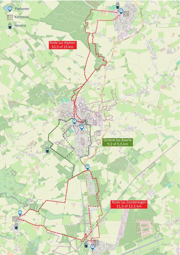 Op de meeste routes is horeca aanwezig. De folder van de kerstwandelingen is te verkrijgen bij het kantoor van Toerisme Baarle en bij de deelnemende horeca langs de routes.