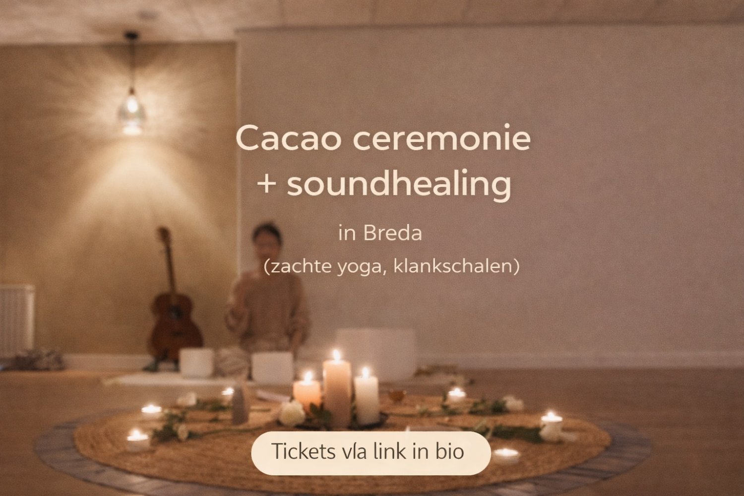 We starten met rustige, aardende yoga en een kalme ademoefening, begeleid door Marlies (Yoga Academy You are the Buddha). Daarna neemt Lisa je mee in een cacao ceremonie en soundhealing. Je ontvangt een kop ceremoniële cacao en zakt vervolgens dieper in ontspanning met onder andere kristallen klankschalen, sjamanistische drum, gitaar en haar stem.