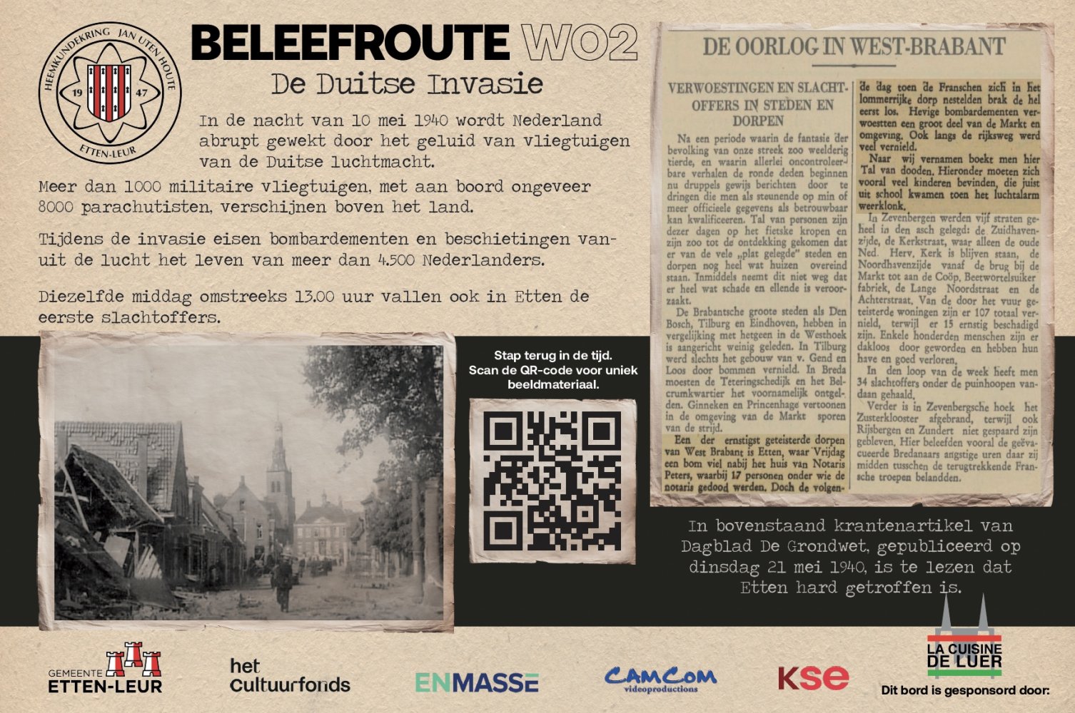Heemkundekring Jan uten Houte, Gemeente Etten-Leur, de KSE, webbureau En Masse en CamCom Videoproductions hebben de route samen ontwikkeld.
