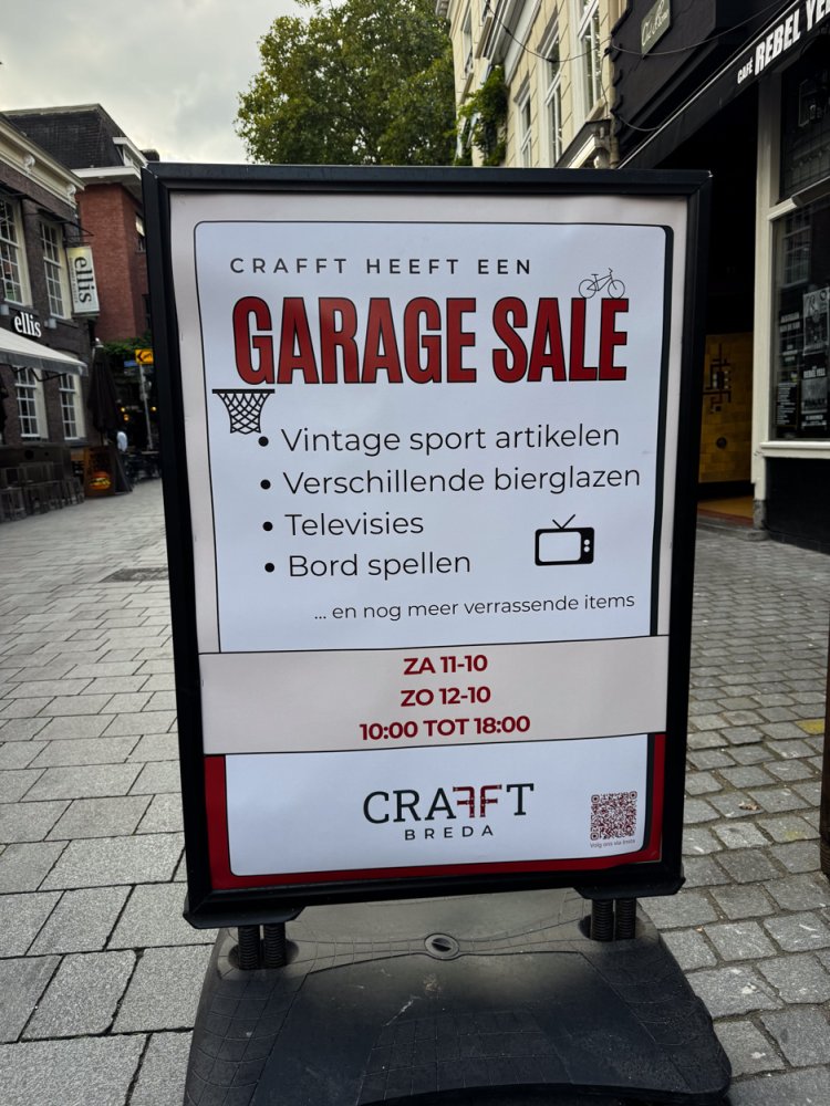 Voor de officiële opening organiseert Crafft een speciale garage sale. In het weekend van 12 oktober worden alle oude sport- en interieuritems van Old Dutch verkocht. Een unieke kans om een stukje Bredase horecahistorie in huis te halen.