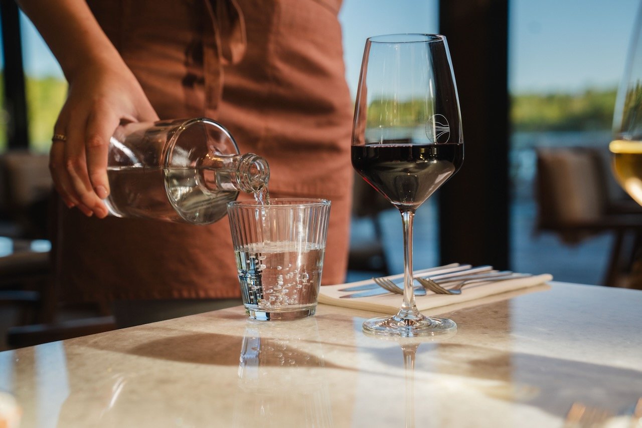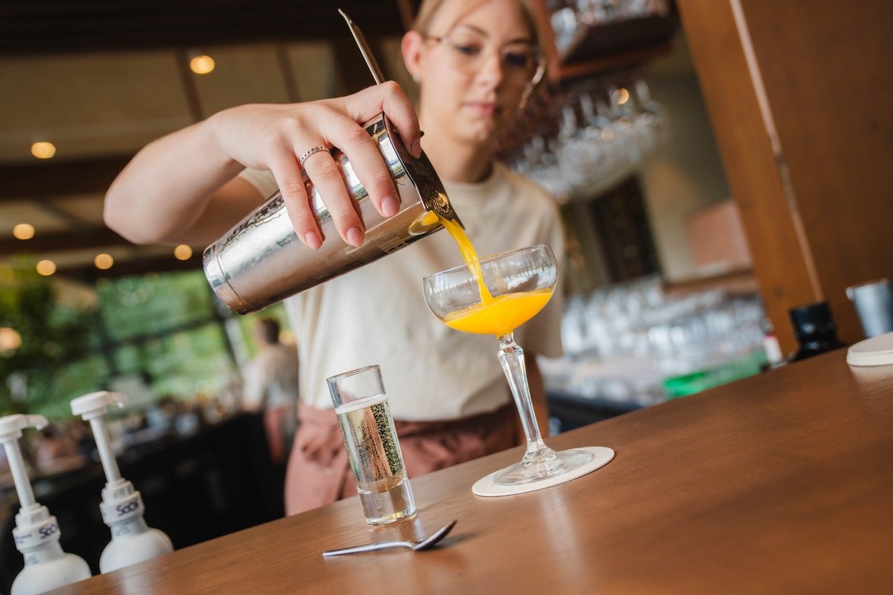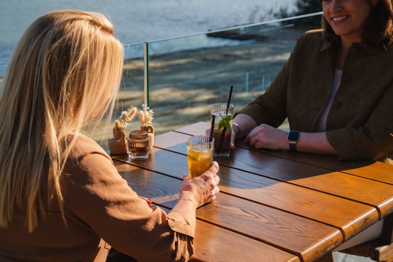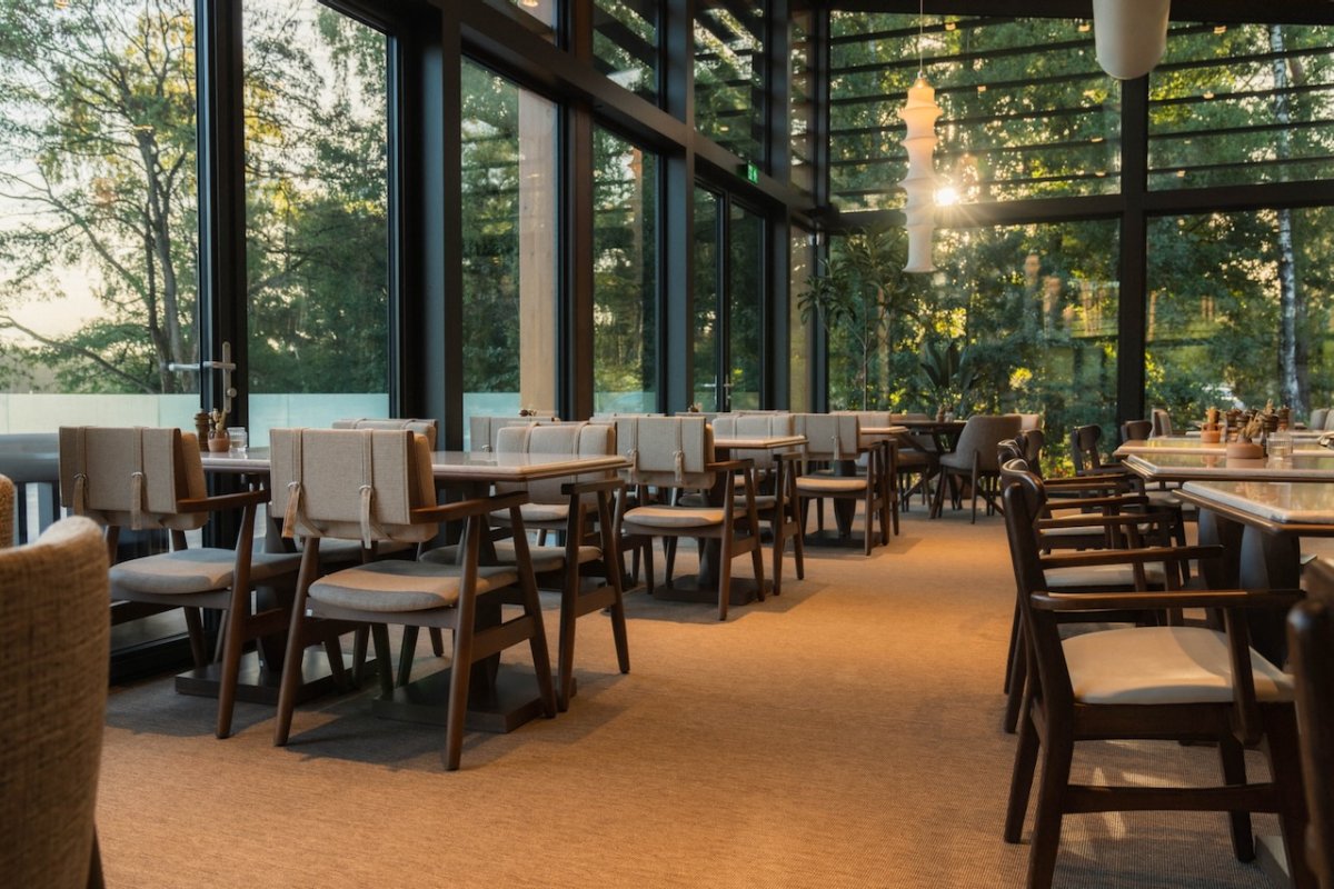 Binnen biedt het restaurant ruimte aan 100 gasten, terwijl het ruime terras met 120 zitplaatsen uitzicht biedt over het water, de perfecte plek om te ontspannen in de natuur.