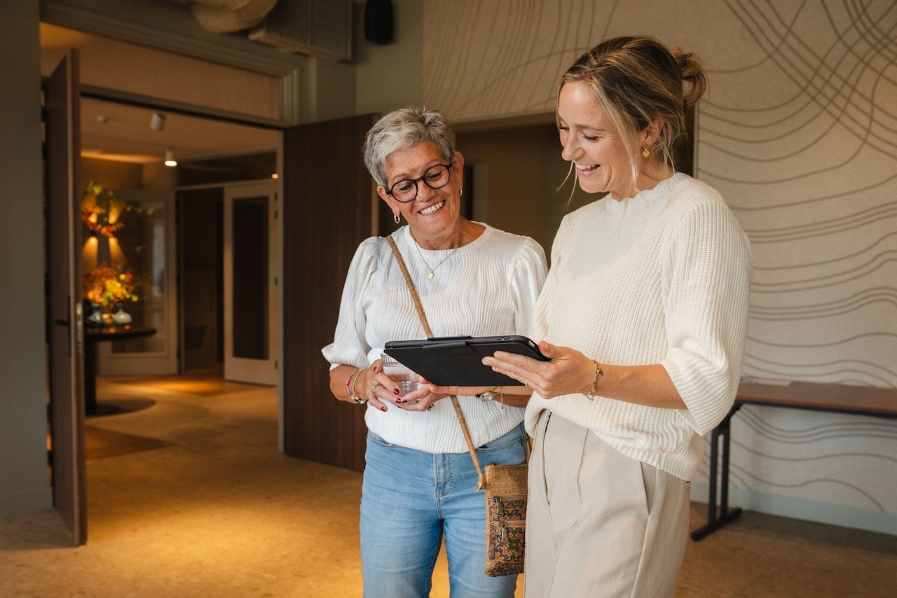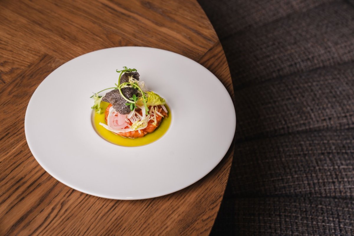 Het interieur ademt sfeer en beleving: zachte aardse tinten, luxe materialen zoals marmer, een stijlvolle wijnkelder, grote ronde banken voor gezelschappen en verschillende gezellige hoekjes die uitnodigen om langer te blijven zitten.