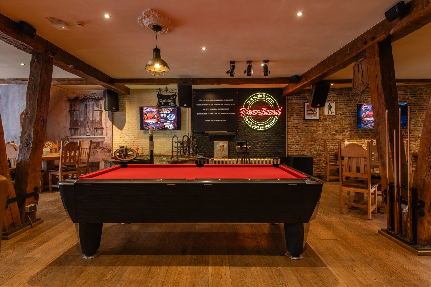 Bij Heartland beleef je Amerika dichterbij dan ooit. Van spannende sportwedstrijden op grote schermen tot live muziek die de juiste vibe neerzet. Van sappige grillgerechten en authentieke Amerikaanse klassiekers tot een stevig ontbijt waarmee je dag goed begint. Alles draait bij ons om genieten, proeven en beleven. In een warme, gastvrije omgeving combineren we smaak, entertainment en gezelligheid tot één unieke ervaring.